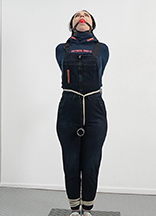 In this custom video request, FoToRo was the evil guy tying me to his figurehead frame. This was a very hard position! The most difficult part was my collar, that was attached to the frame, pulling my neck back while a bar in my back pushed me forward. I really felt like a figurehead, you know, on the front of a ship? This was an amazing stretch, it felt good but it was also very hard to stay tied like this. (video in Dutch language)